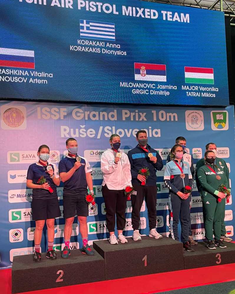 Με Χρυσό μετάλλιο επιστρέφει από τη Σλοβενία η Ελληνική αποστολή. Τα αδέλφια Κορακάκη, Άννα και Διονύσης κατέκτησαν την πρώτη θέση στο Μικτό του Αεροβόλου Πιστολιού.