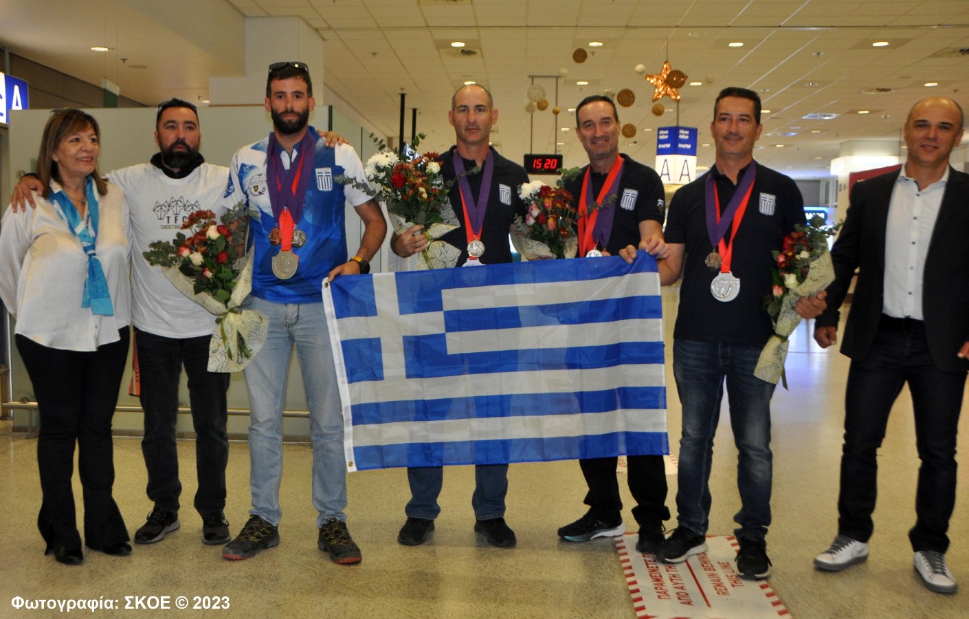 Εντυπωσιακή υποδοχή επιφυλάχθηκε για την Εθνική Ομάδα I.P.S.C. Shotgun κατά την άφιξή της στο αεροδρόμιο Ελευθέριος Βενιζέλος.