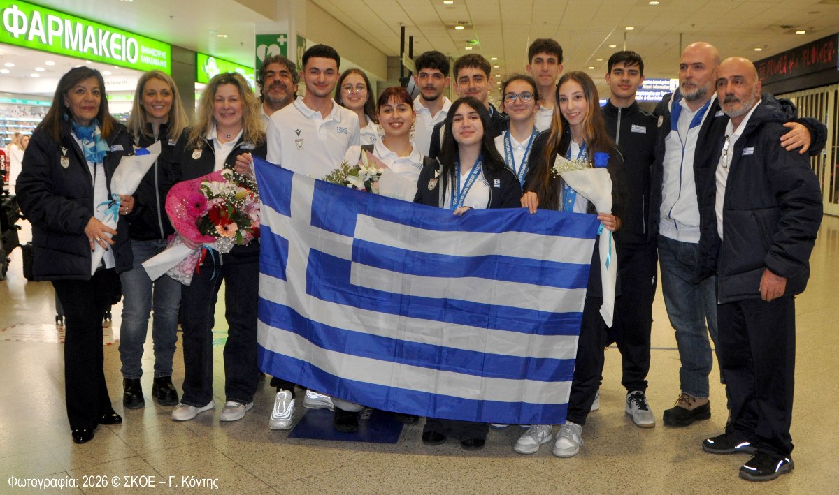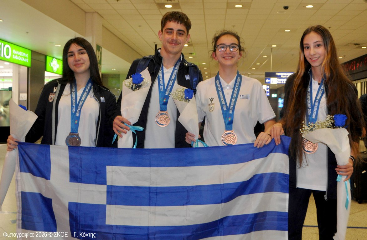 Συναθλητές, γονείς, φίλοι και η ΣΚ.Ο.Ε., περίμεναν τους αθλητές της Ελληνικής Εθνικής Ομάδας Εφήβων και Νεανίδων που διακρίθηκε στο Ευρωπαϊκό Πρωτάθλημα Αεροβόλων Όπλων 2026.