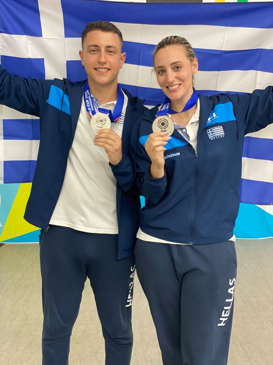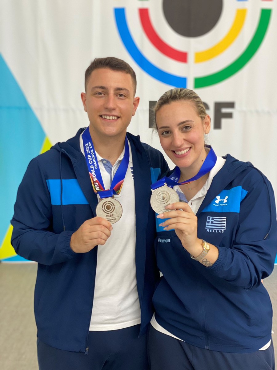 Η Ολυμπιονίκης Άννα Κορακάκη και ο αδελφός της Διονύσης κατέκτησαν το Ασημένιο μετάλλιο στο Μικτό Ομαδικό του Αεροβόλου Πιστολιού.